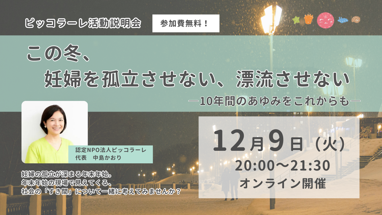 ピッコラーレ主催<妊産婦の居場所生活支援コース>「妊娠葛藤の現場から~ひとりのあなたを知りたい、あなたをひとりにしない~」を開催します(お申し込み受付中!) 2025.5.28|イベント, 研修・セミナー, ニュース|